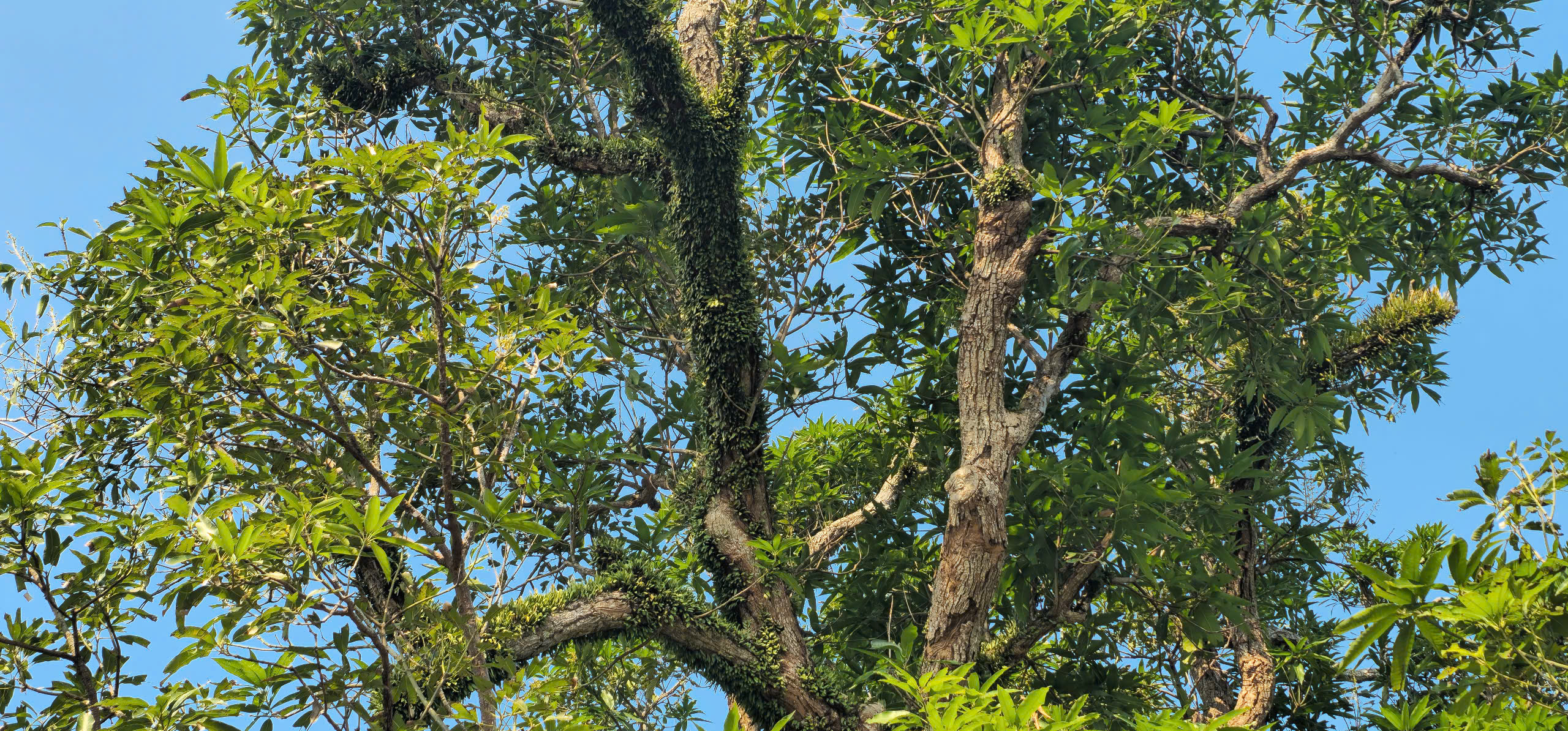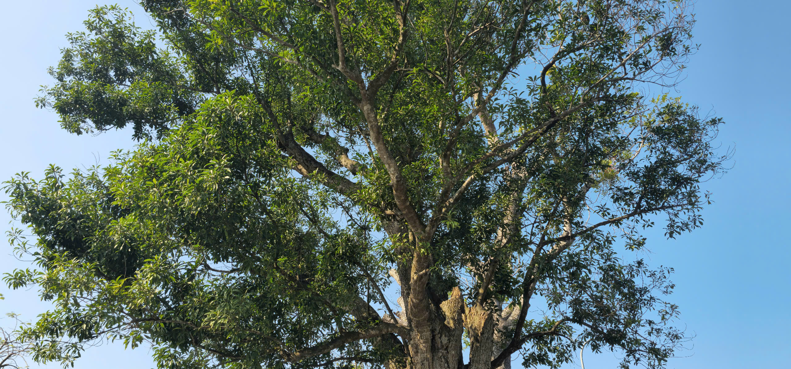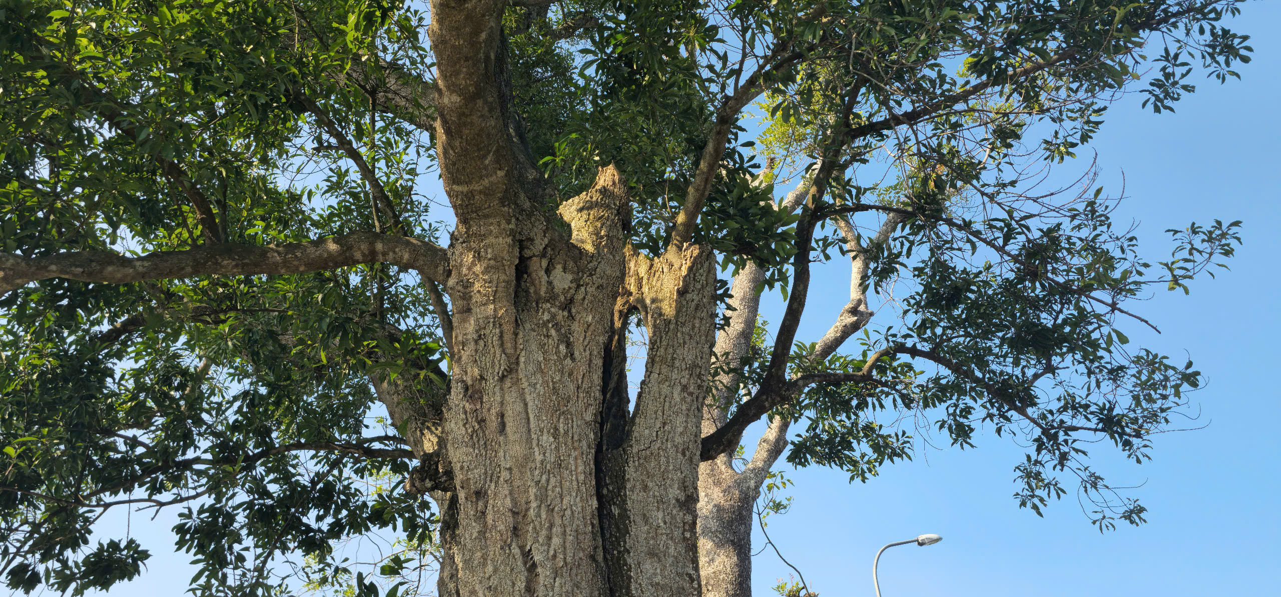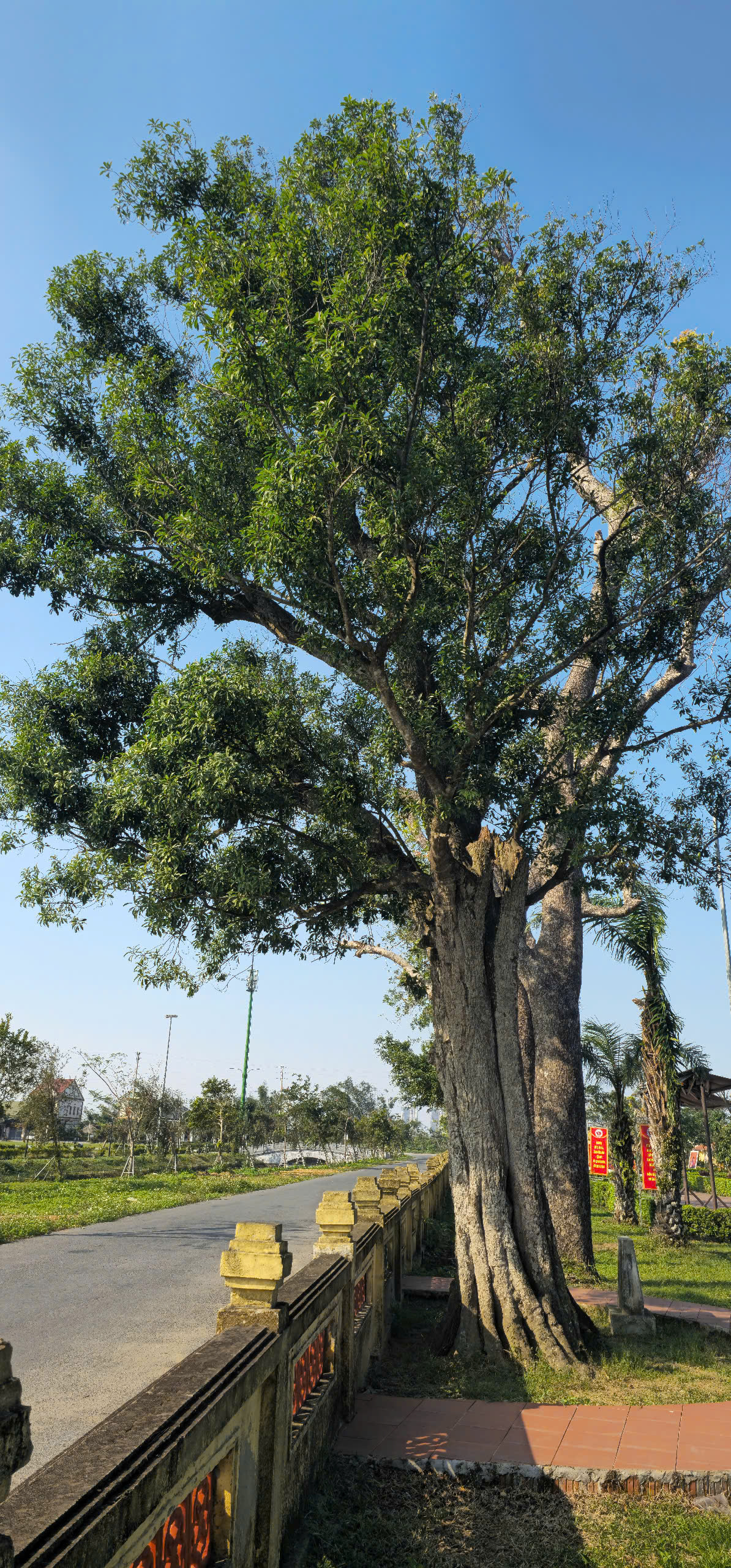 Giữa không gian ấy, có hai cây cổ thụ là cây Muỗm và cây Nóng, được xem như một phần của di sản, tồn tại bền bỉ cùng thời gian. (Trong ảnh là cây Nóng hơn 300 năm tuổi).