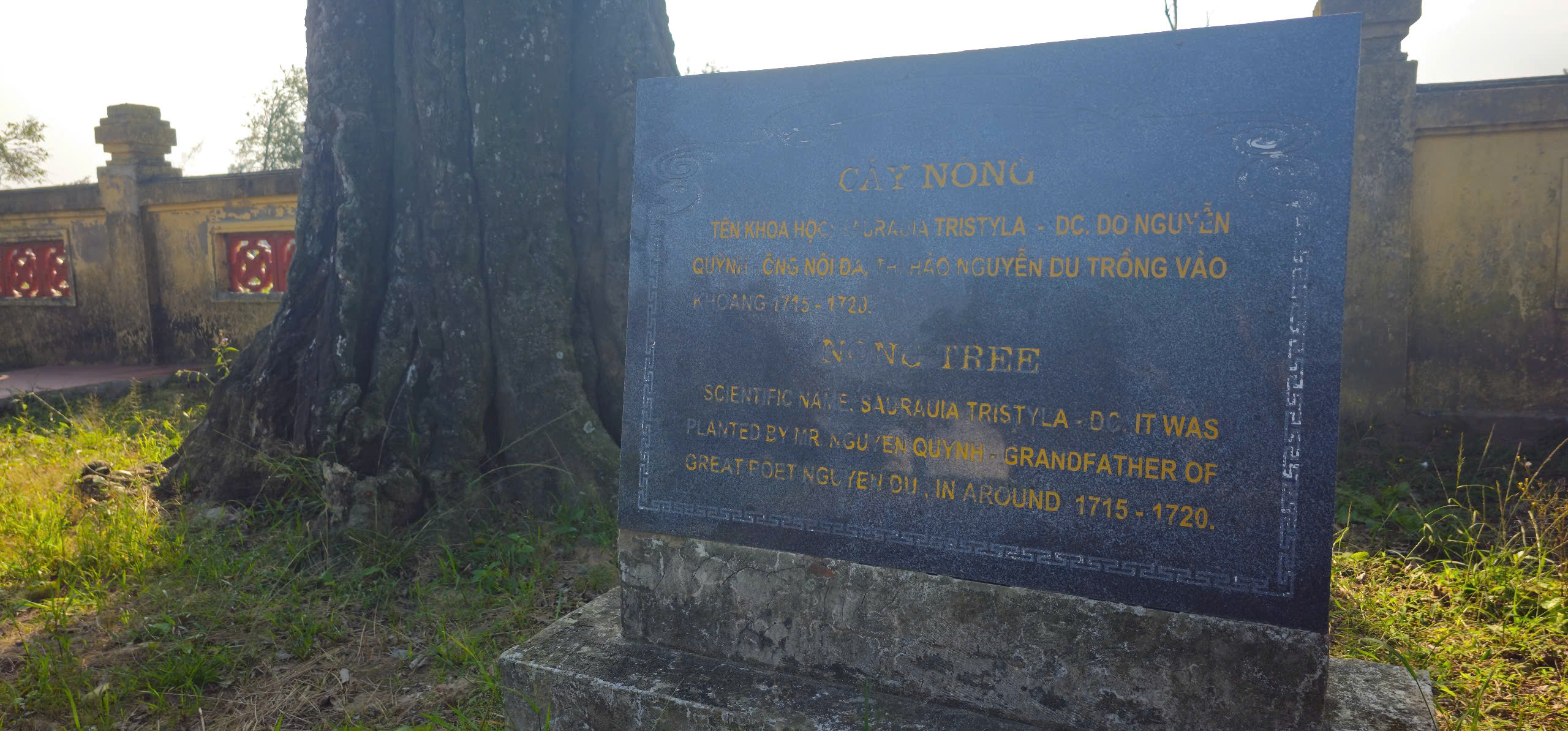 Sức sống mãnh liệt của hai cây cổ thụ trước mưa nắng thời gian, như phản chiếu tinh thần bất khuất, sự trường tồn của văn chương Nguyễn Du, đặc biệt là "Truyện Kiều" – tác phẩm đã đi qua bao thế kỷ. (Trong ảnh gốc cây Nóng sần sùi qua năm tháng).